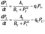 Здесь P1, P2 - концентрации продуктов, величины A1, A2, B1, B2, выражаются