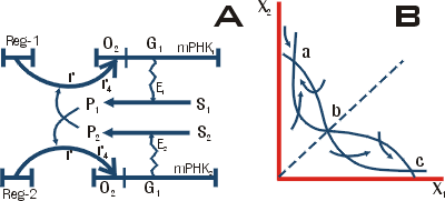 Именно такой тип регуляции предлагается в моделях клеточного цикла. Изменение параметров системы при этом может быть обусловлено генетической программой, например в случае клеточного цикла, происходить в процессе роста клетки.