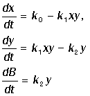 Здесь X, Y, B - концентрации химических компонентов. Первые два уравнения