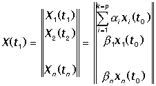 следующий момент времени, например, через год, связан с вектором X(t0) через матрицу перехода L следующим образом: