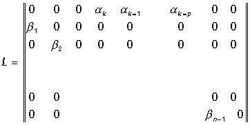 По диагонали матрицы стоят нули, под диагональными элементами - коэффициенты