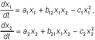 Уравнения конкуренции (b12,>0, b21<0) предсказывают выживание одного из двух видов, в случае если собственная скорость роста другого вида меньше некоторой критической величины. Оба вида могут сосуществовать, если произведение коэффициентов межпопуляционного взаимодействия меньше произведения коэффициентов внутри популяционного взаимодействия: b12b21<c1c2..