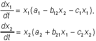 Для взаимоотношений типа хищник-жертва или паразит-хозяин система уравнений (19) принимает вид: