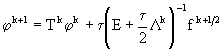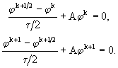 . Эта схема является результатом попеременного применения схем первого порядка точности, явной и неявной, записанных для интервалов времени
