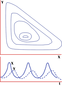 простейших нелинейных моделей взаимодействия химических веществ в уравнениях Лотки, и взаимодействия видов - в моделях Вольтерра [.