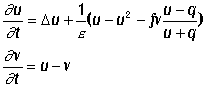 описывающая пространственно-временную динамику HBrO2 (переменная u) и