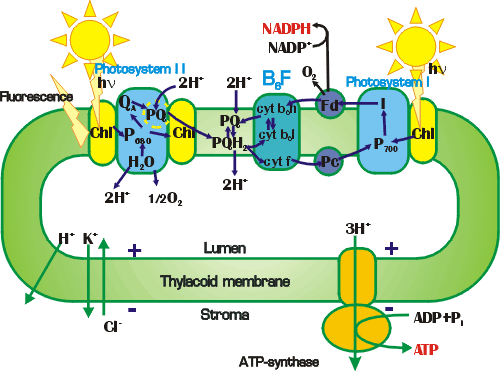 эти процессы происходят в мембране тилакода в структурах, схематически