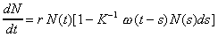 Наиболее распространенное и изученное в динамике популяций уравнение Хатчинсона учитывает тот факт, что особи размножаются лишь с определенного возраста, и имеет вид:
