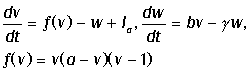 где 0 < a < 1, b и g - положительные константы, v играет роль потенциала V, а w - характеризует нелинейные свойства проводимости мембраны для