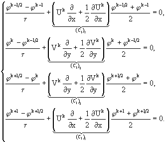 Таким образом, все необходимые условия для применимости метода расщепления соблюдены и можно записать, например, схему двуциклического покомпонентногорасщепления на временном интервале